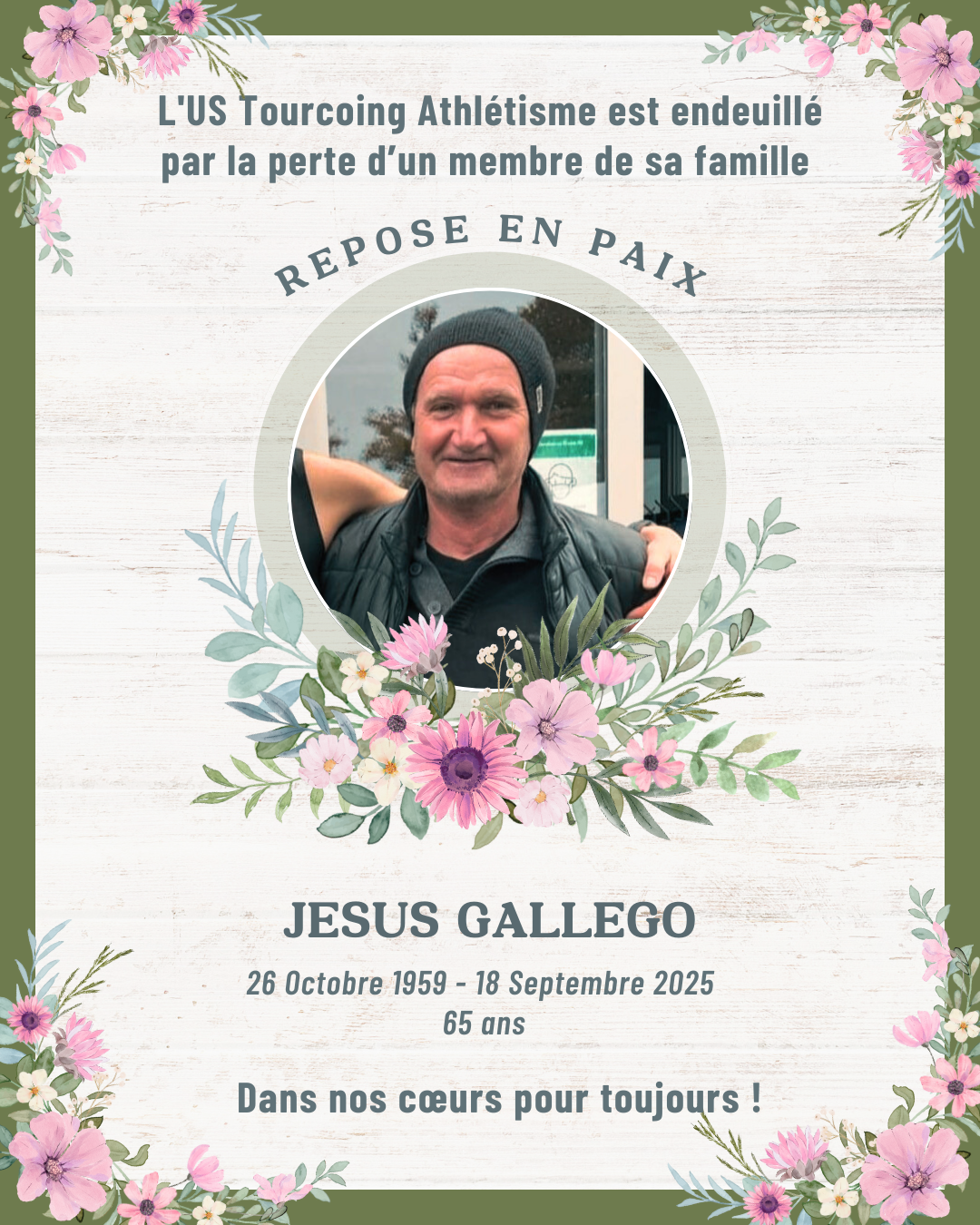 C’est avec une profonde tristesse que nous avons appris le décès de 𝗝é𝘀𝘂𝘀 𝗚𝗔𝗟𝗟𝗘𝗚𝗢, fidèle membre de l’US Tourcoing Athlétisme depuis de très nombreuses années, bien avant les années 2000.